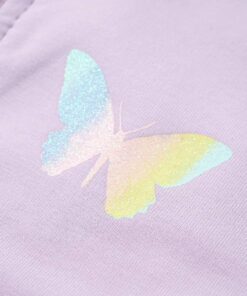 Dit kindervest met capuchon heeft lange mouwen en 2 voorzakken en hij sluit met een ritssluiting. Het kindervest met capuchon is voorzien van een meerkleurige vlinder. Het kindervest is gemaakt van zacht materiaal met 95% katoen en 5% elastaan waardoor het comfortabel en ademend is.