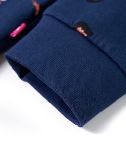 Dit kindervest heeft lange mouwen, een roségouden rits en geribbelde machetten en zoom. Op deze marineblauwe hoodie staan allemaal stippen. De kinderhoodie is gemaakt van 95% katoen en 5% elastaan, waardoor hij comfortabel is en een ademend vermogen heeft.