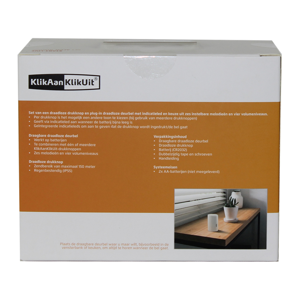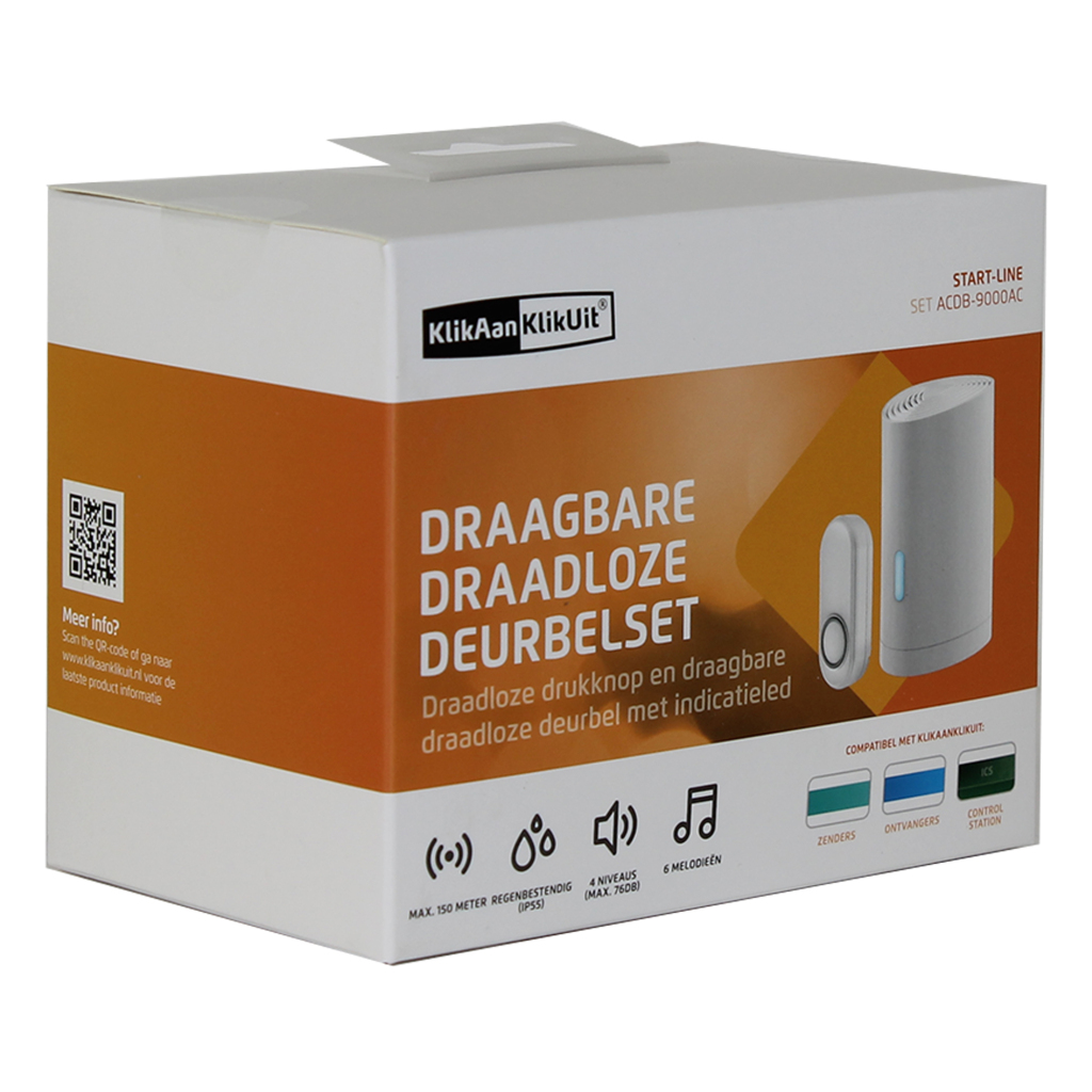 - Deze draagbare draadloze deurbel is te bedienen met de draadloze drukknop en maximaal 31 andere KlikAanKlikUit zenders naar keuze