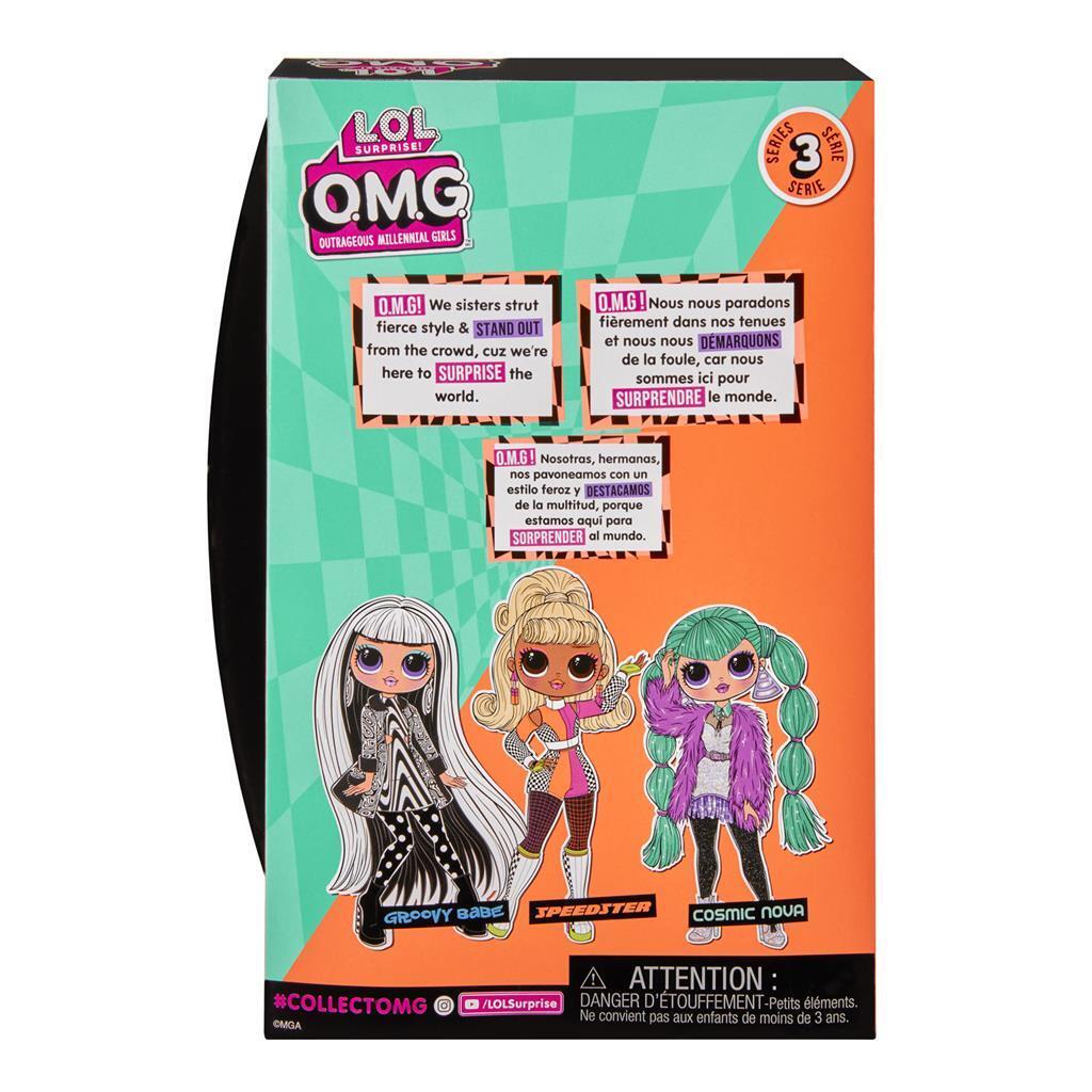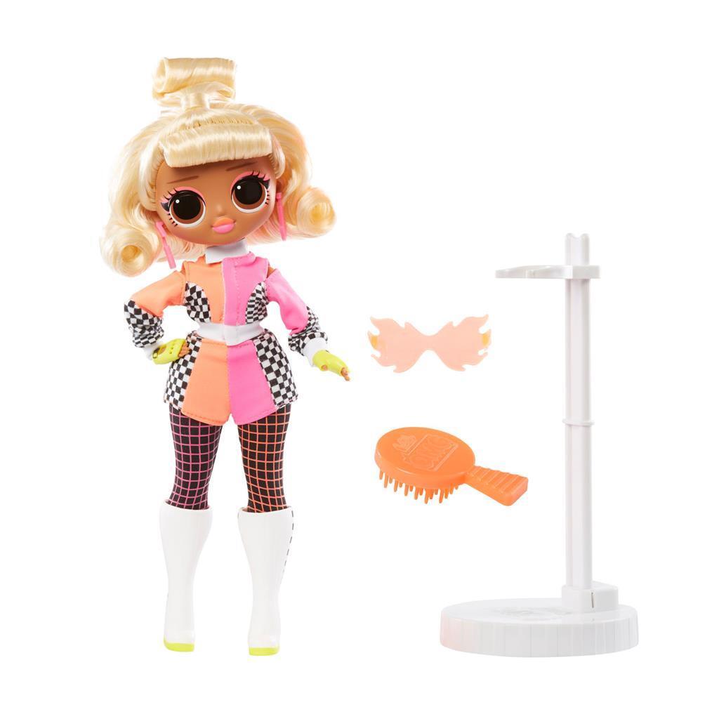 Waarom zou je langzamer gaan als je ook harder kunt? Waarom zou je volgen als je ook kunt inhalen? Waarom zou je tweede worden als je ook eerste kunt zijn? Speedster. De originele, populaire L.O.L. Surprise O.M.G.-modepoppen zijn terug met allerlei verrassingen: hier is Speedster, de grote zus van het geliefde personage Drag Racer! Speedster is altijd klaar om de koppositie in te nemen en geniet van de spanning van snelheid. Deze opnieuw uitgebrachte Speedster-pop heeft het bekende mooie gezichtje en gestylede haar, een adembenemende, op een raceauto geïnspireerde outfit en beweegbare ledematen voor heel veel houdingen. Elke doos is inclusief een L.O.L. Surprise O.M.G.-modepop, een fenomenale outfit, accessoires met veel details, schoenen, een haarborstel en een poppenstandaard. Verzamel alle 3 de opnieuw uitgebrachte L.O.L. Surprise O.M.G.-poppen: Cosmic Nova, Groovy Babe en Speedster.