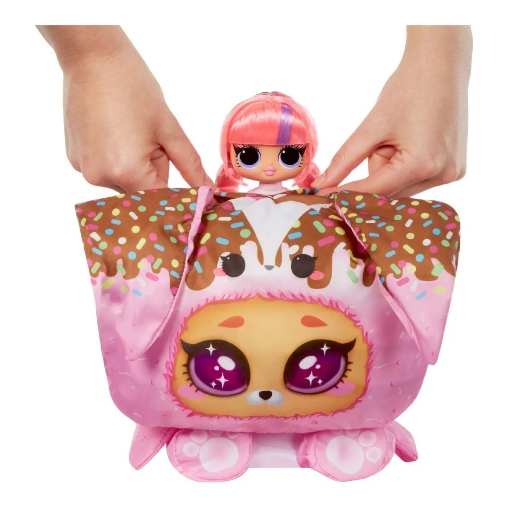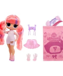 Bereid je voor om de ultieme verrassing uit te pakken met de gloednieuwe L.O.L. Surprise Tweens Costume Surprise met de populaire modepop Hoops Cutie in een prachtige, nieuwe look en met een schattig, opblaasbaar pandakostuum. Ontdek wat erin zit door eerst de rits onder in de verpakking open te trekken en het buitenste, roze omhulsel op te tillen. Nadat het helemaal is opgeblazen, scheur je het open om een lief, paars pandakostuum te ontdekken! Open het klittenband op de achterkant van het pandahoofd om je Tweens Hoops Cutie-pop te onthullen! Vergeet niet om de verrassingen uit te pakken en haal de Tweens-pop uit haar poppenstandaard om haar de trendy, nieuwe mode en accessoires aan te trekken, zoals een modieuze rok, een schattig, gestreept jack, een stijlvolle haarband met pandaoren die bij haar knuffelige kostuum past en elegante schoenen! Sluit het dierenkostuum en kijk hoe het groter wordt en zichzelf helemaal opblaast, waardoor je twee maatjes hebt om mee te spelen: Hoops Cutie en haar pandakostuum!