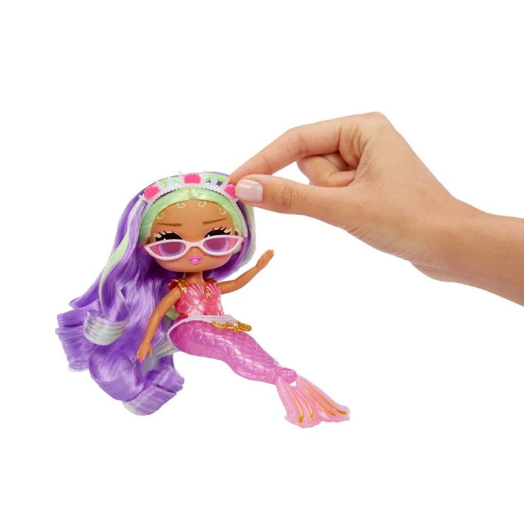 Duik in een betoverende wereld vol kleurenmagie en verrassingen met de nieuwe L.O.L. Surprise Tweens Mermaid Cleo Cove-modepop met accessoires om uit te pakken! Perfect voor in bad en om fantasierijk mee te spelen. Doop je Tweens Mermaid-pop in koud water en kijk hoe de kleur van haar staart verandert van magenta in dieppaars voor een magische onderwaterervaring! Kun jij raden in welke kleur haar lichtroze vin verandert? Vergeet niet om je pop te stylen met haar betoverende accessoires zoals haar zeebril, schelpentiara en schattige parelriem! Ze heeft een heel mooi gezichtje, prachtig haar, haar eigen modieuze zeemeerminnenlook en beweegbare ledematen voor heel veel houdingen. Ze kan bijvoorbeeld ook zitten! Ook kan ze stabiel op haar vin staan, waardoor je haar makkelijker kunt stylen! Ontdek wat er in elke doos zit, zoals een schitterende L.O.L. Surprise Tweens Mermaid-pop, bril, haarband en een riem die bij de staart van de pop past!