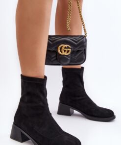 Dameslaarsjes van eco-suède. Op een lage blokhak. Afgeronde teen. Enkellang bovenwerk. Een klassiek model dat bij bijna elke herfstoutfit past!