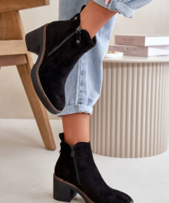 Dameslaarzen gemaakt van zacht kunstsuède. Geplaatst op een stabiele blokhak. Het interieur is gevoerd met schoenvacht, wat voor warmte en comfort zorgt tijdens het dragen. Dit model heeft ronde neuzen en is voorzien van een ritssluiting, wat het aan- en uittrekken vergemakkelijkt. Perfect voor herfst- en winteroutfits.