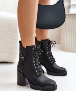 Booties van het merk Jezzi, gemaakt van eco leer. Staat op een stabiele naaldhak. Model met rits en extra vetersluiting, wat een perfecte pasvorm garandeert. Verwarmde binnenkant zorgt voor comfort op koudere dagen. Op het bovenwerk zit een stijlvol bandje versierd met gouden details, dat elegantie toevoegt en het unieke karakter benadrukt.