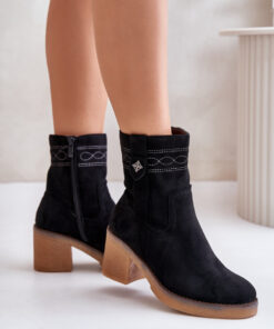 Klassieke dameslaarzen van eco-suède. Op een naaldhak. Afgeronde neus. Dit model onderscheidt zich door stiksels op het bovenwerk en een klein detail. Binnenkant geïsoleerd met zachte schoenendeken, ideaal voor koudere dagen.