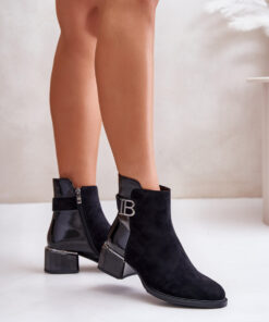 Elegante dameslaarzen gemaakt van een combinatie van eco-suède en eco-leder. Model met rits en geïsoleerde binnenkant voor comfort op koudere dagen. Afgeronde neuzen voegen subtiliteit toe en een riempje met versiering op het bovenwerk is een stijlvol accent. Ideaal voor herfst- en winterdagen.