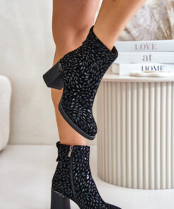 Elegante dameslaarzen van natuurlijk suède. Gezet op een hak in de vorm van een paal. Het grote voordeel van dit model zijn de vele reliëfs op het bovenwerk. Afgeronde teen. Sluiting met rits. Warme binnenkant met schoenendeken voor warmte en comfort op koudere dagen.