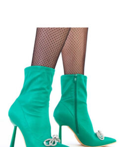 Satynowe enkellaarsjes met een decoratief strikje met zirkonia zijn een voorstel voor vrouwen die graag opvallen met elegantie en een originele stijl. Gemaakt van delicate stof met een subtiele glans, zien ze er zeer chique uit, en het decoratieve strikje met zirkonia voegt een luxueus karakter toe. De slanke, puntige neus en de schacht van 16 cm hoog benadrukken prachtig de lijn van de voet en het been. De stabiele hak van 10,5 cm hoog maakt de silhouet optisch slanker en voegt een vrouwelijke touch toe. De ecologische leren binnenzool zorgt voor comfortabel dragen, en de praktische ritssluiting vergemakkelijkt het aan- en uittrekken. Dit enkellaarsjesmodel is een ideale keuze voor speciale gelegenheden, wanneer elegantie en opvallende details tellen.