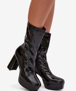 Dames laarzen gemaakt van eco-leer. Ze onderscheiden zich door hun glanzende afwerking en decoratieve stiksels op de schacht, die ze karakter geven. Geplaatst op een stabiele blokhak en praktische platform, verfijnen ze optisch het silhouet en bieden tegelijkertijd comfortabel dragen. De schoenen zijn voorzien van een rits, wat het aan- en uittrekken vergemakkelijkt. Het interieur is gevoerd op de hoogte van de voet, waardoor ze geschikt zijn voor koelere dagen. Dit is het ideale model voor styling met zowel broeken als een jurk.