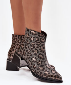 Stijlvolle en elegante dames enkellaarzen gemaakt van natuurlijk leer zijn een voorstel dat modieus uiterlijk combineert met comfortabel gebruik. Het model onderscheidt zich door een opvallend luipaardpatroon, waardoor het een uitgesproken karakter heeft en de vrouwelijke stijl benadrukt. Geplaatst op een stabiele blokhak zorgen ze voor draagcomfort, en de praktische ritssluiting vergemakkelijkt het aan- en uittrekken. De amandelvormige neuzen voegen subtiele elegantie toe, en het decoratieve stiksel langs de schacht verlengt optisch het been en benadrukt de slanke lijn van de laars. Het gevoerde interieur zorgt voor warmte op koelere dagen, waardoor de enkellaarzen perfect zijn voor het herfst-winterseizoen. Dit model zal een ideale aanvulling zijn op zowel alledaagse als meer formele outfits.