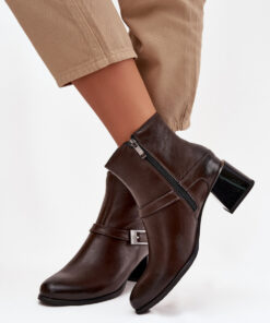 Dames laarzen gemaakt van natuurlijk leer zijn een elegante keuze voor koelere dagen. Gevoerd met vilt zorgen ze voor comfort en warmte, en de stabiele blokhak voegt slankheid toe aan de silhouet, terwijl hij tegelijkertijd comfortabel is om te dragen. Het model met praktische rits is gemakkelijk in gebruik, en de decoratieve riem met gesp geeft het geheel een chique en moderne uitstraling. Dit zijn schoenen die ideaal zijn voor zowel alledaagse als elegante outfits.