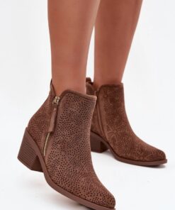 Dameslaarzen in cowboystijl van het merk S.Barski. Gemaakt van hoogwaardige materialen, ze zien er elegant uit en trekken de aandacht met details. Het model is geplaatst op een stabiele, afgeknotte pilaarhak die comfort en gemak bij het lopen biedt, terwijl het subtiel de silhouet verslankt. Amandelvormige neuzen geven de laarzen een vrouwelijk karakter en benadrukken de elegante lijn van de voet. De laarzen hebben een praktische ritssluiting die het aan- en uittrekken vergemakkelijkt, en een extra, decoratieve rits dient als een stijlvol detail en geeft het hele model een moderne en originele uitstraling. Dit is het perfecte schoeisel voor casual outfits en outfits geïnspireerd op boho mode.
