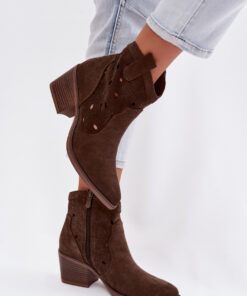 Laarzen met een uitgehold patroon voor dames zijn een combinatie van de klassieke westerse stijl met een moderne uitstraling. Gemaakt van imitatiesuède, ze zien er licht en stijlvol uit, en de delicate uitgesneden details geven ze een uniek karakter, waardoor ze een subtiele elegantie uitstralen. De amandelvormige neuzen benadrukken de vrouwelijke vorm van de schoenen, en de rits aan de zijkant zorgt voor comfort en snel aan- en uittrekken. Deze cowboylaarzen zijn perfect voor casual, stedelijke outfits en ook als een origineel accent voor meer opvallende outfits. Ideaal voor vrouwen die comfort willen combineren met een modieuze, onconventionele uitstraling.