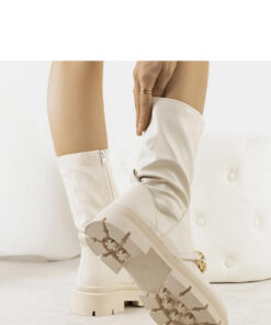 De beige laarzen met hoge zool van Luisina zijn de absolute hit van dit seizoen! Hun dikke, grove zool ziet er niet alleen geweldig uit, maar zorgt ook voor comfort tijdens het dragen. Het bovenwerk is gemaakt van hoogwaardig synthetisch leer en een extra riempje met een ketting voegt een modieus accent toe. De binnenkant van de laarzen is licht gevoerd met bont, waardoor ze perfect zijn voor koudere dagen. De laarzen hebben een standaard maatvoering, dus het is raadzaam om je normale maat te kiezen. De ritssluiting vergemakkelijkt het aan- en uittrekken. De Luisina laarzen zijn een uitstekende keuze voor elke modieuze vrouw die de nieuwste trends wil volgen!