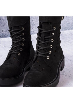 Zwarte kanten enkellaarsjes van Legault zijn de ideale schoenen voor de aankomende zomer. Met een enkelhoogte versierd met kleine ruitvormige uitsparingen, zullen deze laarsjes charme toevoegen aan elke outfit. Gemaakt van ecologisch suède, ongevoerd, zijn ze niet alleen stijlvol maar ook comfortabel. Ze sluiten met een rits en zijn ook nog eens aan de voorkant vast te binden met ronde veters, voor een perfecte pasvorm. Ideaal voor liefhebbers van de boho-stijl. De standaard maatvoering zorgt ervoor dat je je geen zorgen hoeft te maken over het kiezen van de juiste maat. Daarnaast hebben de laarsjes een zwarte rubberen zool, waardoor ze niet alleen trendy maar ook praktisch zijn. Perfect schoeisel voor warme zomerdagen!