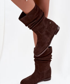 Dameslaarzen van het merk Maciejka zijn een combinatie van uitzonderlijke stijl en comfort. Gemaakt van hoogwaardig natuurlijk suède, ze zijn zacht en elegant. Het model is voorzien van een platte hak, wat zorgt voor maximaal draagcomfort, zelfs na vele uren. De binnenkant van de schoenen is gevoerd, waardoor ze perfect zijn voor koudere dagen, warmte en comfort garanderend. De geplooide schacht geeft het geheel een modieus karakter. Het is een stijlvol en veelzijdig model dat zowel goed past bij jeans en leggings als bij jurken of rokken, waardoor elegante dagelijkse looks ontstaan.