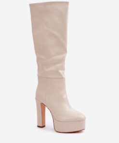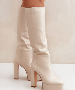 Ingeschoven dameslaarzen gemaakt van imitatiesuède. Geplaatst op een stevige platform en stabiele blokhak, combineren ze stijl met comfort. Het interieur gevoerd met een schoenenvoering zorgt voor warmte op koude dagen. De schacht met subtiele rimpels voegt elegantie en subtiel karakter toe. Ideaal voor dagelijkse en meer stijlvolle winterse outfits.