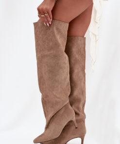 Dameslaarzen met over-de-knie schacht zijn een elegante en stijlvolle keuze voor het herfst-winterseizoen. Met een slanke hak en puntige neuzen voegen ze niet alleen lichtheid toe aan de silhouet, maar verlengen ze ook subtiel de benen, waardoor de vrouwelijke vormen worden benadrukt. De puntige neuzen voegen een verfijnde touch toe, terwijl het hoogwaardige materiaal duurzaamheid en comfort biedt. Deze laarzen zijn perfect te combineren met elegante jurken, rokken of meer casual, modieuze outfits, waardoor ze een opvallende aanvulling zijn op elke winterse look.