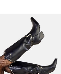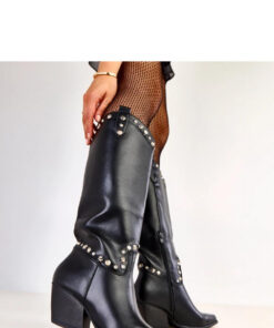 Stijlvolle en karakteristieke dames cowboylaarzen die een klassiek ontwerp combineren met modieuze, decoratieve afwerking. Gemaakt van hoogwaardig synthetisch leer, zien ze er elegant uit en zijn ze gemakkelijk te onderhouden. Het model met een hoogte tot de knie en een schacht van 35 cm benadrukt mooi het been, terwijl het comfortabel is om te dragen. De ronde neus en stabiele hak van 7 cm garanderen comfort en verlengen de silhouet lichtjes. De laarzen zijn gevoerd en perfect voor koudere dagen, en hebben een ritssluiting voor gemakkelijk aan- en uittrekken. De decoratieve studs geven ze een uniek, enigszins rockachtig karakter, en de kunststof binnenzool zorgt voor duurzaamheid en comfortabel gebruik. Dit is de ideale keuze voor vrouwen die waarde hechten aan een modieuze uitstraling, comfort en een vleugje westernstijl in hun dagelijkse outfits.