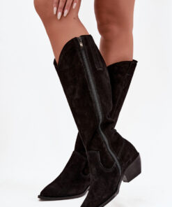 Laarzen cowboylaarzen voor dames gemaakt van hoogwaardig natuurlijk suède zijn een combinatie van tijdloze stijl en comfort. De karakteristieke puntige neuzen geven een vrouwelijke, stijlvolle uitstraling, benadrukken de silhouet en voegen lichtheid toe. Het interieur is gevoerd met vilt, wat zorgt voor thermisch comfort en gemak tijdens koelere dagen. Hierdoor zijn de laarzen perfect voor zowel dagelijkse outfits als speciale gelegenheden. Dit model is geïnspireerd op de klassieke westernstijl, die er geweldig uitziet in combinatie met boho-jurken, rokken of aansluitende jeans. Een ideale keuze voor vrouwen die mode, comfort en unieke schoenen waarderen.