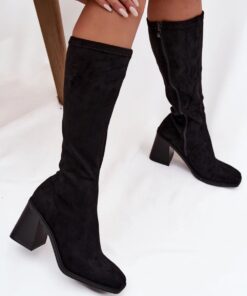 Dames laarzen gemaakt van imitatie suède zijn een voorstel dat indruk maakt met elegantie en universele stijl. Het model met ritssluiting is geplaatst op een stabiele, stevige hak in de vorm van een zuil, die comfort en zekerheid bij het lopen biedt, terwijl het silhouet subtiel verslankt. De licht afgeronde neuzen geven de schoenen een klassiek, vrouwelijk karakter, en de stiksels aan de voorkant en achterkant van de schacht verlengen optisch de benen, benadrukken hun vorm. De zachte textuur van imitatie suède voegt elegantie toe aan de schoenen en zorgt ervoor dat ze perfect passen bij de herfst-winter trends. Dit model ziet er geweldig uit in zowel alledaagse als meer elegante outfits. De laarzen passen perfect bij rokken en jurken, waardoor stijlvolle, vrouwelijke looks ontstaan die perfect zijn voor zowel dagelijks gebruik als speciale gelegenheden.