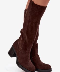 Dames laarzen gemaakt van imitatiesuède zijn een uitstekend voorstel voor het herfst-winterseizoen. Het model op een stevige pilaarhak zorgt voor stabiliteit en comfort tijdens het dragen. De afgeronde neuzen geven het geheel een klassieke uitstraling, en de praktische rits maakt het aan- en uittrekken gemakkelijk. Het interieur, gevoerd met zacht schoenenvoering, garandeert thermisch comfort op koudere dagen. Dit zijn veelzijdige laarzen die zowel in alledaagse als meer elegante outfits goed zullen passen.
