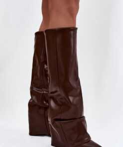 De dameslaarzen met omgeslagen schacht zijn een echte must-have voor het komende herfst-winterseizoen! Ze zijn insteekbaar en geplaatst op een stabiele pilaarhak, wat comfort en een zekere stap garandeert. De voering zorgt voor comfort op koelere dagen, en de omgeslagen schacht die over de hak valt, geeft ze een origineel karakter. De puntige neuzen benadrukken de vrouwelijke stijl, waardoor de laarzen perfect zijn voor opvallende, winterse outfits.