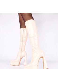 Stijlvolle, gelakte laarzen gemaakt van hoogwaardig ecologisch leer, die indruk maken met elegantie en een moderne, opvallende stijl. Hun hoge schacht van 37 cm benadrukt de been op een prachtige manier, waardoor een uitzonderlijk vrouwelijke en gedurfde look ontstaat. Het model heeft een puntige neus die de laarzen slankheid en elegantie geeft. De laarzen zijn geplaatst op een stabiele blokhak van 15 cm hoog, en een extra platform van 5 cm zorgt voor comfort, verlicht de voet en vergemakkelijkt het lopen ondanks de indrukwekkende hoogte van de hak. Het interieur is afgewerkt met een stoffen binnenzool, en het ontbreken van isolatie maakt het model perfect voor overgangsperiodes of elegante gelegenheden. De praktische ritssluiting vergemakkelijkt het aan- en uittrekken, terwijl het zorgt voor een perfecte pasvorm rond de voet. Dit is een voorstel voor vrouwen die van een opvallende, luxueuze stijl houden en een vleugje krachtige, modieuze uitstraling aan hun outfits willen toevoegen.