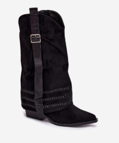 Laarzen in cowboy-stijl voor dames gemaakt van kunstsuède zijn een indrukwekkend model voor liefhebbers van de westernstijl. Met een afgeknotte paalhak voegen ze lichtheid toe aan de figuur, terwijl puntige neuzen hun kenmerkende vrouwelijke stijl benadrukken. De schacht is versierd met een decoratieve gesp die langs de zijkant loopt, wat een originele en modieuze uitstraling geeft. Het is het perfecte model voor herfst- en winterstijlen.