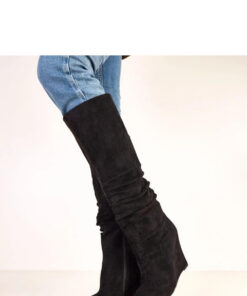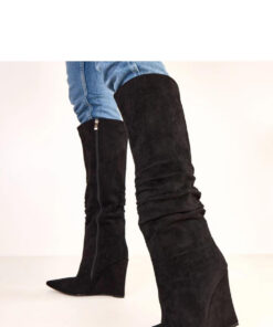 Elegante kniehoge laarzen gemaakt van hoogwaardig ecologisch suède, die stijl met comfort combineren. Het model met een klassieke snit is voorzien van een slanke, puntige neus en een subtiele, vrouwelijke uitstraling. De schoenen zijn geplaatst op een stabiele wig van 11 cm hoog, die de benen optisch verlengt en tegelijkertijd meer comfort biedt dan klassieke pumps. Het gevoerde interieur zorgt voor warmte op koelere dagen, en de ritssluiting vergemakkelijkt het aantrekken. Dankzij de hoge schacht (41 cm) accentueren de laarzen de benen prachtig en passen ze perfect bij jurken, rokken of nauwsluitende broeken. Dit is een stijlvol en tijdloos model, ideaal voor het herfst-winterseizoen.