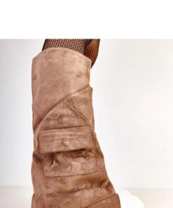 Elegante en stijlvolle damesschoenen van imitatiesuède, die een klassieke snit combineren met trendy details. Het model tot aan de knie en met omgeslagen schacht voegt karakter toe aan elke winterse outfit. De schoenen hebben een ronde neus, een voering die comfort biedt op koudere dagen en een plateauzool van 3,5 cm hoog, die subtiel de benen verlengt en stabiliteit biedt tijdens het lopen. Een decoratieve zak op de schacht benadrukt een trendy, moderne uitstraling, en het instapmodel maakt het gemakkelijk om snel aan te trekken. Het model met een schachthoogte van 37 cm, met een binnenzool van kunststof, garandeert comfort gedurende de hele dag.