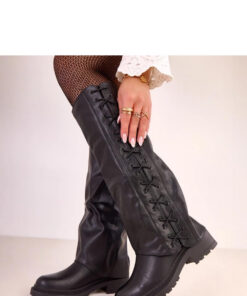 Moderne en functionele laarzen met een afneembare bovenlaag van de schacht, waardoor het mogelijk is om twee verschillende stylingen te creëren in één model. Gemaakt van hoogwaardig synthetisch leer, combineren ze elegantie met praktisch nut, ideaal voor koelere dagen. De bovenste helft van de schacht is versierd met stijlvol veters, die de laarzen een uniek, modieus karakter geven. Het model heeft een gevoerd interieur voor thermisch comfort en een ritssluiting voor gemakkelijk aan- en uittrekken. De ronde neus garandeert comfort, terwijl de stabiele hak van 5 cm hoogte lichtheid en comfort toevoegt tijdens het lopen. Deze hoge, klassieke laarzen onderscheiden zich door hun interessante design en de mogelijkheid tot personalisatie, een uitstekende keuze voor vrouwen die elegantie, comfort en originele details waarderen.