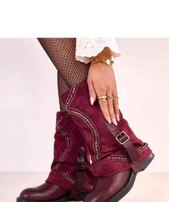 Stijlvolle lage laarzen met omgeslagen schacht, die elegantie combineren met een subtiele glans van decoratie. Gemaakt van hoogwaardig imitatiesuède leer, zien ze er bijzonder smaakvol uit en zijn ze een uitstekende keuze voor koelere dagen. Het model is voorzien van decoratieve zirkonia’s en gespen op de schacht, die het geheel een bijzonder vrouwelijk karakter geven. De ronde neus zorgt voor draagcomfort, terwijl de stabiele hak van 3,5 cm hoogte zorgt voor comfort en een zelfverzekerde tred. Dankzij de voering en de ritssluiting zijn de laarzen praktisch en comfortabel in gebruik. De schacht van 26 cm hoogte valt mooi om de voet, waardoor een elegante en moderne uitstraling ontstaat.