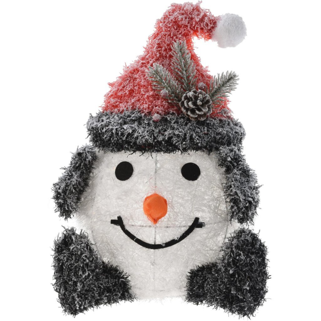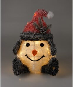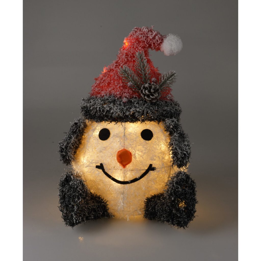 Diverse grappige sneeuwpoppen, verlicht met LEDs. Met een 6-uur timerfunctie. Werkend op batterijen. Hoogtes: 36/42 cm.