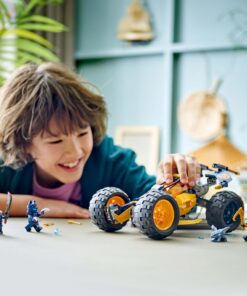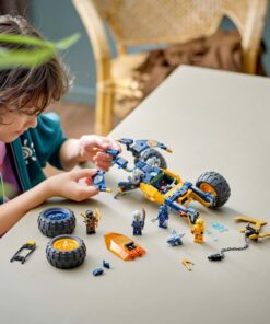 Jongens en meisjes kunnen spannende scènes uit seizoen 2 van de tv-serie NINJAGO Dragons Rising naspelen met LEGO NINJAGO Arins ninjaterreinbuggy (71811). Deze avonturenset voor kinderen bevat een geel speelgoedvoertuig met bewegende wielen, vering, een cockpit die open kan met ruimte voor 2 minifiguren, 2 noppenschieters met 6 noppen om af te vuren en een grote haak aan de achterkant om schurken mee te vangen. Het ninjaspeelgoed wordt geleverd met een model van baby Riyu en 4 NINJAGO minifiguren: klimmer Cole met klimhaak en katana, Arin met klimhaak en katana, een Wolvenmasker klauwstrijder met klauwen en Cinder met een zwaard. De rest van het LEGO NINJAGO assortiment bouwbaar ninjaspeelgoed omvat mecha, draken en tempels, zodat fans de actie kunnen naspelen met hun helden (sets worden apart verkocht). Elke ninjaspeelset kan worden gemaakt met behulp van de LEGO Builder app, die jou en je kind begeleidt op een eenvoudig en intuïtief bouwavontuur. 267-delig. Geschikt vanaf 7 jaar.