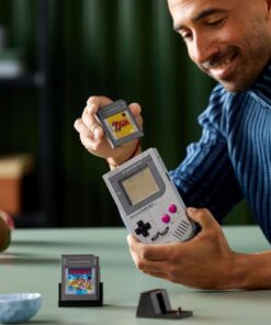 Deze verzamelset is een replicamodel (op schaal van bijna 1:1) van de originele Game Boy draagbare spelcomputer van Nintendo. Druk op de +Control Pad, A- en B-knoppen en SELECT en START, net als op het echte systeem. Het model heeft ook andere bekende Game Boy details, waaronder een contrast- en volumeknop en de Game Pak-sleuf. Pas je scherm aan met verwisselbare, van stenen gebouwde The Legend of Zelda: Link’s Awakening of Super Mario Land Game Boy Game Paks en bijbehorende schermen met 3D-effect (of een Nintendo startscherm). Plaats je creatie op de bouwbare displaystandaard om het nostalgische display helemaal af te maken. Je vindt de stapsgewijze instructies voor deze Lego Nintendo set in de doos of in de Builder app. Deze set voor volwassenen kan na het bouwen gebruikt worden als mooie woondecoratie. Deze set is een leuk cadeau voor gamers en fans van Nintendo games.