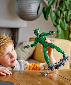 Geef kinderen avonturen uit de Marvel film in eigen handen met deze verstelbare LEGO Marvel Green Goblin bouwfiguur (76284) het ultieme Spider-Man schurkenbouwspeelgoed. Dit Marvel schurkenspeelgoed is leuk voor jonge superhelden om te bouwen, mee te spelen en neer te zetten. Dankzij de beweegbare schouder-, arm-, heup- en beengewrichten kunnen kinderen coole actiehoudingen creëren terwijl ze spannende missies uitvoeren. De authentiek gedetailleerde Green Goblin wordt geleverd met 2 pompoenbommen en zijn beroemde zweefvliegtuig. De bommen passen in de hand van het personage en in de opslagruimte aan de achterkant van het zweefvliegtuig. Ideaal voor zelfstandige rollenspellen. Voor nog meer digitaal plezier kunnen bouwers inzoomen, sets in 3D draaien en hun voortgang bijhouden met de leuke, intuïtieve LEGO Builder app. 471-delig. Geschikt vanaf 8 jaar.