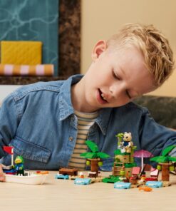 Inspireer meisjes en jongens met de aanpasbare set Lego Animal Crossing 77048 Kapp’n Island Boat Tour. Kinderen bouwen een onbewoond eiland dat ze zullen herkennen uit hun favoriete videogame en kunnen daarna uren plezier beleven aan het herbouwen voor nog meer speelplezier. Kinderen gaan samen met Kapp’n de schildpad op zijn boot naar het op Animal Crossing gebaseerde onbewoonde eiland en ontmoeten daar Marshal de eekhoorn. Net als in de game verzamelen ze bamboe, graven ze naar klingels en gebruiken ze de hengel om vis te vangen en te verkopen. Na een leuk rollenspel kunnen kinderen creatief aan de slag met het opnieuw indelen van de bouwplaten. Elk element is verplaatsbaar voor onbeperkt speelplezier! Laat kinderen genieten van het bouwen van verhalen uit de Animal Crossing videogame. Dit bouwspeelgoed is een leuke cadeautip voor een verjaardag en kan worden gecombineerd met andere Animal Crossing sets voor onbeperkte speelmogelijkheden. 233-delig. Geschikt voor kinderen vanaf 6 jaar.