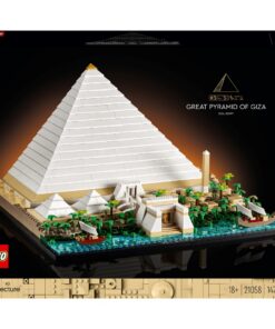 Maak een reis terug in de tijd naar de 26ste eeuw v.Chr. en ontdek één van de zeven wereldwonderen: de Grote Piramide van Gizeh en haar omgeving. Deze LegoArchitecture set heeft alles wat je nodig hebt om de Grote Piramide en haar omgeving te bouwen, met 2 kleine piramides, 2 dodentempels, standbeelden van sfinxen, een arbeidersdorp, een obelisk en een deel van de Nijl met een boot. Boordevol authentieke details: til de buitenkant van het model op en bekijk het systeem waarmee stenen tijdens de bouw mogelijk werden verplaatst, of bewonder vanaf de achterkant van het bouwmodel de konings- en koninginnekamer en de hoofdgangen. Dit Legogebouw, staat schitterend als decoratie in huis en bevat een instructieboekje met leuke weetjes over de geschiedenis van beroemde gebouwen, zoals de Grote Piramide van Gizeh. Dit displaymodel van een iconische piramide is een geweldige cadeau tip voor een vriend, vriendin of dierbare die gek is op reizen, architectuur en geschiedenis. 1476-delig. Vanaf 18 jaar.