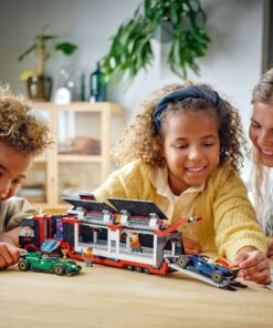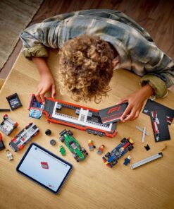Deze transporttruck heeft een afneembare aanhanger met een F1 simulatorruimte en een dubbele voertuigruimte met volledig te openen zijpanelen. Kinderen kunnen de achterklep omhoog tillen en de oprijplaten uitschuiven om de coole RB20 en AMR24 F1 raceauto’s in te laden. Inclusief minifiguren van 2 coureurs en 3 monteurs, plus een trofee. Deze Lego F1 speelgoedset bevat een stapsgewijze gedrukte bouwgids en digitale instructies in de Builder app. Hier kunnen kinderen inzoomen en modellen in 3D draaien, hun voortgang bijhouden tijdens het bouwen en andere speelsets verkennen en opslaan. Kinderen kunnen deze Formule 1 racewagenset combineren met andere sets (apart verkrijgbaar) uit het Lego City assortiment voor nog meer actie. Geschikt voor kinderen vanaf 8 jaar.