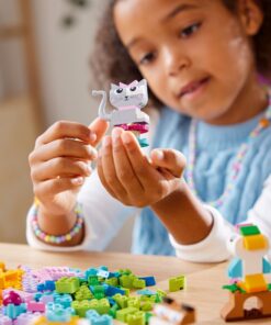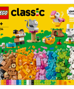 Dierenliefhebbers kunnen genieten met Lego Classic 11034 Creative Pets, een inspirerende combinatie van dierenstenen met eenvoudige handleidingen voor een kleurrijke reeks snel te bouwen dierenspeelgoed. Het is een geweldige manier om de creatieve vaardigheden van kinderen te stimuleren. Met 450 bouwstenen, waaronder speciale onderdelen met ogen en monden, en eenvoudige stapsgewijze instructies kunnen kinderen een hond bouwen met een voerbak en bot, een kat op een krabpaal, een hamster met een appel, een konijn met een wortel en een vogel op een zitstok. Vervolgens kunnen ze met behulp van de suggesties voor alternatieve kleuren, vormen en functies hun huisdieren op een leuke, nieuwe manier herbouwen en hun eigen ideeën uitproberen. Er wordt een gids met 10 ideeën meegeleverd om het vrije bouwplezier een boost te geven. 450-delig. Geschikt voor kinderen vanaf 5 jaar.