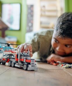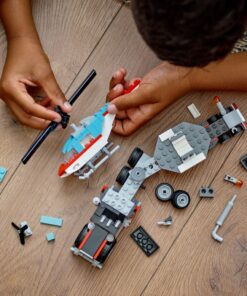 Kinderen kunnen de 270 onderdelen van de Creator set gebruiken om een coole transportwagen met beweegbare wielen te bouwen die een helikopter met draaibare rotorbladen kan vervoeren op de oplegger. Kinderen kunnen met dit Creator speelgoed 3 verschillende combinaties van 2 afzonderlijke speelgoed voertuigen bouwen. Ze kunnen de speelgoed vrachtwagen met helikopter bouwen, deze ombouwen tot een propellervliegtuig en een brandstoftruck met bewegende wielen of een hot rod en terreinwagen of de stenen gebruiken om hun eigen voertuigen te bedenken. Creator 3in1 speelgoed is een geweldig cadeau met in elke doos 3 bouwmogelijkheden voor kinderen die houden van speelgoed auto’s, speelgoed vliegtuigen, voertuigen en bouwsets. Kinderen zullen de modellen graag bouwen, herbouwen en opnieuw bouwen. Ze kunnen zich urenlang vermaken met 3in1 sets die aansluiten op hun interesses, waaronder snelle voertuigen, geweldige dieren en gedetailleerde stadstaferelen. Bevat 270 onderdelen. Geschikt voor kinderen vanaf 7 jaar.