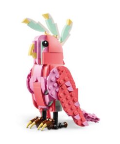 De roze flamingo heeft een verstelbare kop en een kleine, met planten versierde standaard voor fantasierijk spelen of als displaymodel. Met deze set krijgen kinderen 3 verschillende bouwmogelijkheden met dezelfde set stenen: een roze flamingo met een beweegbare kop op een met planten bedekte standaard, een verstelbare roze kaketoe die zijn kop 360 graden kan draaien of een schattige verstelbare roze axolotl met onderwaterplanten. Lego Creator sets prikkelen de fantasie met 3 verschillende bouwmodellen in elke doos. Kinderen zullen de modellen graag bouwen, herbouwen en opnieuw bouwen. De sets hebben verschillende onderwerpen die aansluiten op de grootste passies van kinderen, waaronder supersnelle voertuigen, coole dieren en gedetailleerde huizen. De modellen kunnen niet tegelijkertijd worden gebouwd. Geschikt voor kinderen vanaf 8 jaar.