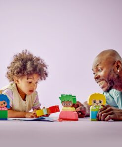 Help peuters hun emotionele reacties beter te begrijpen met hetLego Duplo 10415 gevoelens en emoties educatief speelgoed. Het wordt geleverd met 4 verschillende personages, elk met 2 uitdrukkingen, zodat peuters de gezichten van het speelgoed kunnen veranderen om aan te geven hoe ze zich voelen. Met dit inclusieve speelgoed kunnen ze ontdekken hoe de ene persoon er heel anders uit kan zien dan de andere. Peuters verfijnen hun creatieve en fijne motoriek door de gekleurde stenen te stapelen om de figuren te creëren. Ze oefenen het combineren van kleuren door het haar en de kleding van de speelgoedpersonages met stenen van dezelfde kleur te bouwen of de figuren opnieuw op te bouwen met contrasterende kleuren. Dit speelgoed wordt geleverd met stenen in interessante vormen die voor kleine vingertjes leuk zijn om te verkennen, waardoor peuters onbeperkt creatief kunnen spelen. 23-delig. Geschikt voor kinderen vanaf 18 maanden.
