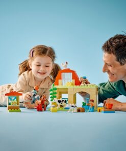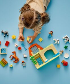 Ken je een peuter die dol is op boerderijen? De setLego Duplo 10416 Dieren Verzorgen op de Boerderij is een ideaal cadeau voor elke kleine dierenliefhebber. Dit educatieve speelgoed wordt geleverd met 8 dierenfiguren waaronder figuren van paarden, een schaap, koeien en kippen voor peuters die dol zijn op doen alsof en graag nieuwe vrienden maken op de boerderij. Deze speelgoedboerderij boordevol functies laat gezinnen opgaan in verzorgend spel, terwijl volwassenen hun kindje laten zien hoe ze de dieren kunnen voeden en verzorgen. De boer helpt de kinderfiguur met het afspoelen van de appels om aan de koe en haar kalfje te voeren. In het kippenhok zorgt de kip voor haar kuikens. Peuters kunnen ook doen alsof ze een ritje maken op de paardenfiguur en hem hooi voeren in de stal. Dit educatieve speelgoed bevat kleurrijke bouwstenen en elementen die interessant zijn voor peuters en tijdens het bouwen hun probleemoplossend vermogen en fijne motoriek versterken. 74-delig. Geschikt voor kinderen vanaf 2 jaar.