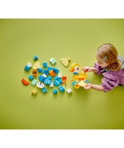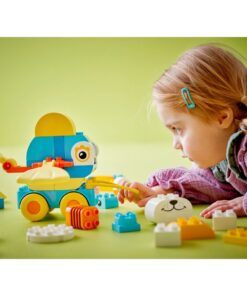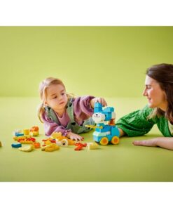 Kleine dierenliefhebbers kunnen op allerlei manieren genieten van fantasierijk spel terwijl ze een eend, vis of hond bouwen of een zelfbedacht dier! Peuters die dol zijn opLego Duplo speelgoed bouwen de figuren op een wielbasis en kunnen daarna hun dieren laten rondrijden door ze aan het handvat voort te trekken. Dit cadeau voor peuters heeft beweegbare functies, zoals een flexibele staart en scharnierende elementen, die op een leuke manier de fijne motoriek stimuleren. Kleine kinderen gebruiken hun focus, doorzettingsvermogen en fantasie om de creatieve speelgoeddieren steeds opnieuw te bouwen. Dit peuterspeelgoed biedt volop speelse leermomenten. Deze 3in1Lego Duplo set bevat gemakkelijk te hanteren blokken die eenvoudig uit elkaar te halen zijn, waardoor peuters kunnen leren hoe ze de wielbasis in evenwicht kunnen brengen om te voorkomen dat hun creatie omvalt. Bevat 58 onderdelen.