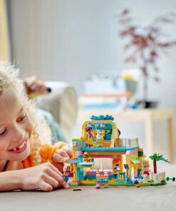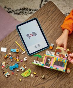 Meisjes en jongens vanaf 6 jaar kunnen urenlang plezier beleven in de winkel met dierenaccessoires. Dit bouwpakket voor kinderen bevat 3 Friends poppetjes en Speelgoed dieren figuren van een kat, hond en konijn voor fantasierijke rollenspellen. Ga samen met Friends Nova, Leo en Matilde op zoek naar nieuwe hoeden en accessoires voor hun dierenvriendjes Churro, Gurkie en Amos. Breng de huisdieren met de lift naar de verzorgingsruimte, waar ze via een transportband door de inzeep-, was- en droogstations worden geleid. Bekijk de accessoires, waaronder een koksmuts, baseballpet en bolletje wol. Er is ook geld en een kassa. Pas op voor de hondenpoep! Gelukkig is er een schep om het op te ruimen! Ontdek meer grappige details, zoals het ontwerp van het gebouw in de vorm van een hond, compleet met beweegbare wenkbrauwen en draaibare strik.