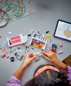 Met dit bouwpakket kunnen meisjes en jongens van 7 jaar en ouder urenlang fantasierijk spelen. De set bevat 3 Friends poppetjes en diverse haaraccessoires voor creatieve rollenspellen. Deze set vertelt het verhaal van de vriendinnen Nova en Aliya, die genieten van een dag vol plezier waarin ze nieuwe stijlen uitproberen met haarstylist Faraji. Het gebouw van 2 verdiepingen beschikt over een kapsalon op de bovenste verdieping met stoelen, haardrogers, borstels en pruiken voor de personages. Beneden vind je een accessoirewinkel met meer pruiken en leuke accessoires om de nieuwe looks van de Friends personages compleet te maken. Kinderen kunnen de personages in het fotohokje zetten en de foto’s van Aliya en Nova zien verschijnen. De set bevat ook een draaibare etalage, plus een kleine skatebaan met skates en een helm. Bekijk ook de andere leuke sets (apart verkrijgbaar) in het Friends universum, waar nog veel meer vriendschapsverhalen te ontdekken zijn. Bevat 347 onderdelen.
