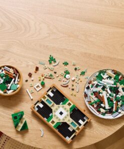 Relax terwijl je elk detail creëert, herschik de bomen, bloemen en pergola’s en pas de 4 hoekdelen van je tuin aan totdat je helemaal tevreden bent. Deze nieuwe set in de collectie Tuinen van de wereld is geïnspireerd op de schoonheid en diversiteit van landschapsarchitectuur en heeft een fraaie fontein, sierlijke lavabo, decoratief betegelde paden en klimplanten met bloemen rondom pergola’s met witte zuilen en rode dakpannen. De tuin bevat een bloeiende wijnstok, 2 cipressen, een rode geranium, witte petunia’s, rode hibiscus, roze bougainvillea en goudsbloemen, plus dierenfiguren van een vogel, kikker en maanvlinder. Maak ruimte voor ontspanning met de uitgebreide reeks Lego bouwsets die speciaal zijn ontworpen voor volwassenen (apart verkrijgbaar). De Builder app bevat een digitale 3D-versie van de bouwinstructies die bij deze bouwbare Lego tuin horen.